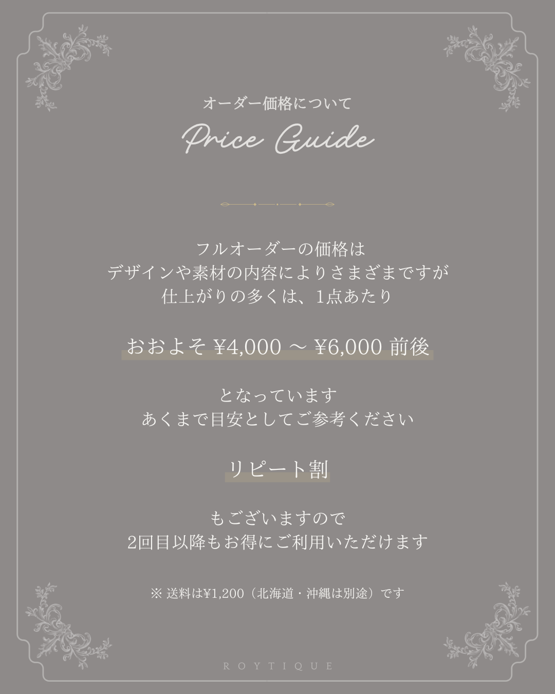 ※フルオーダーの価格はデザインや素材の内容により前後します。
