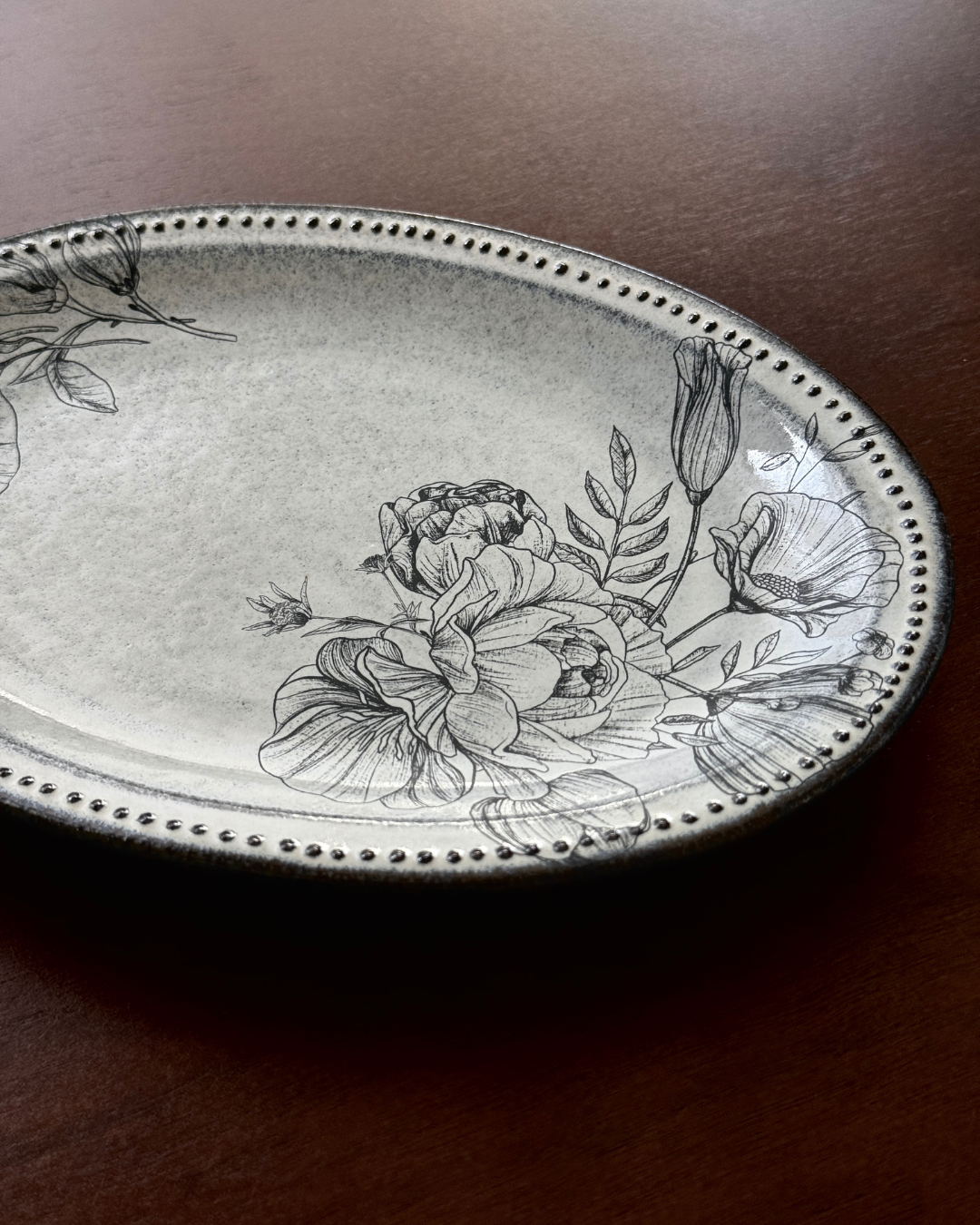 ドットのモチーフをあしらったオーバルプレート。