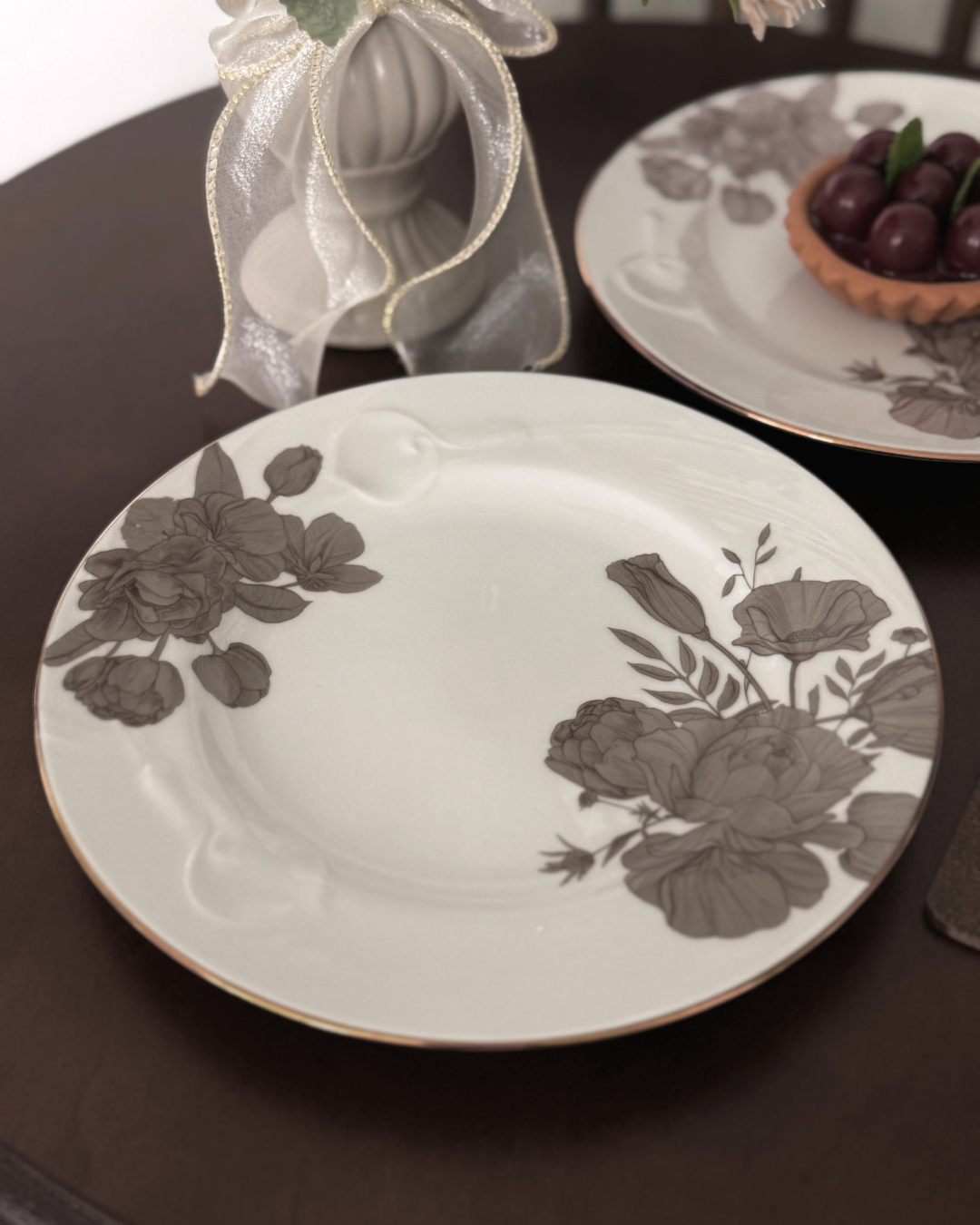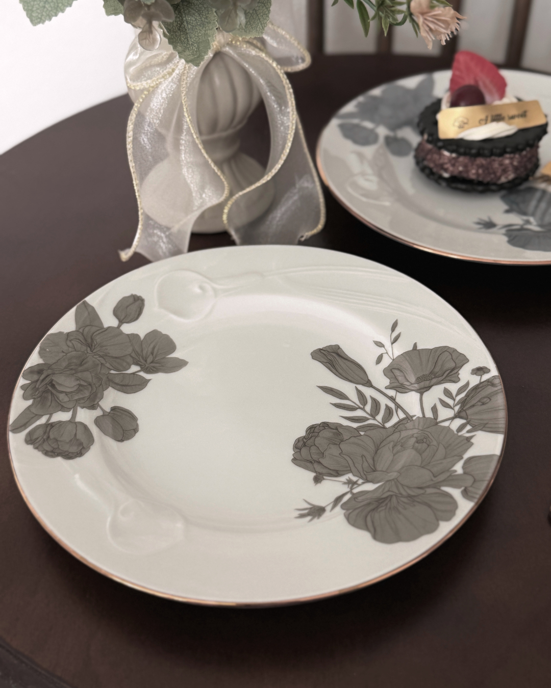 カラーリリーのレリーフがエレガントなプレートに