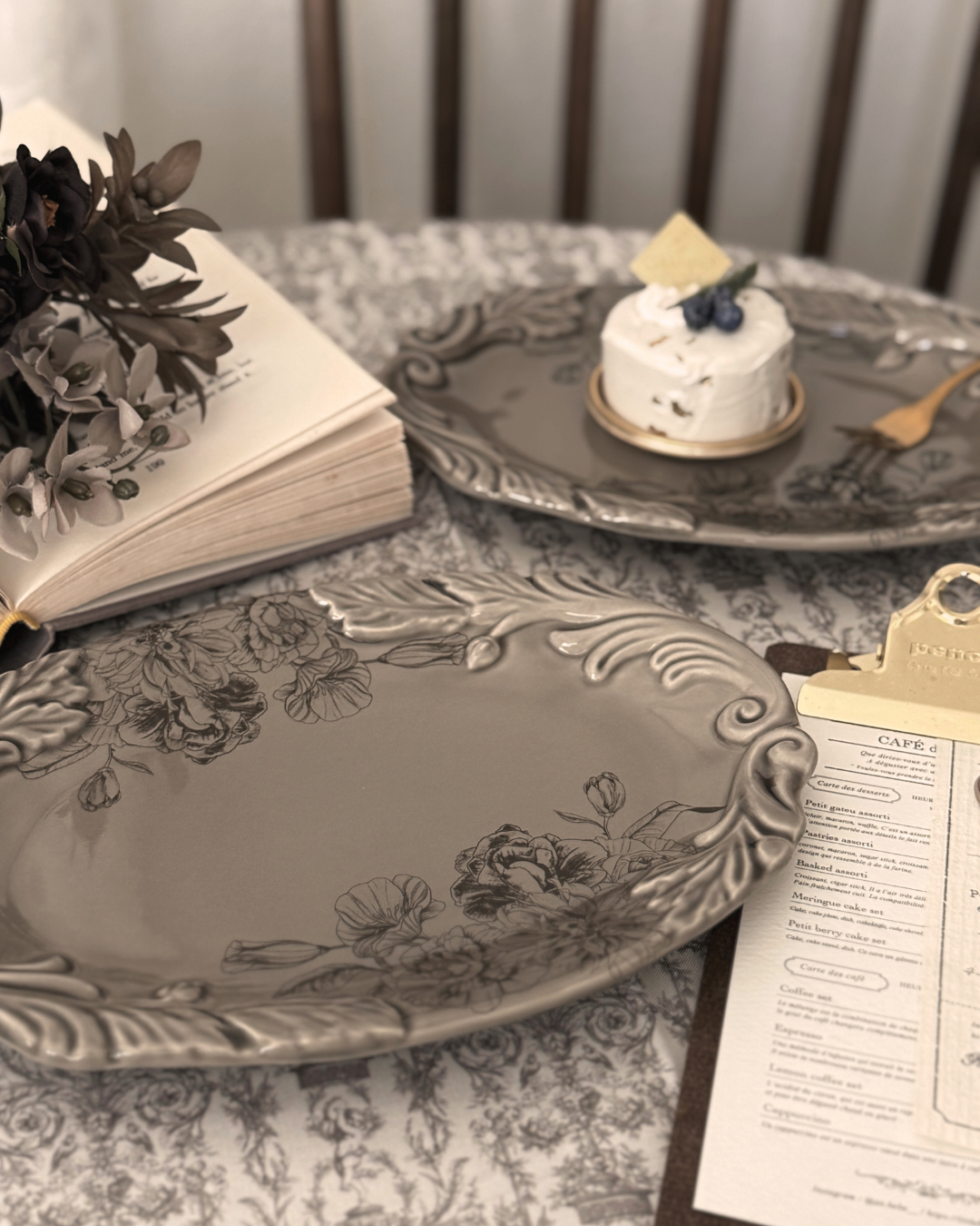 大きなレリーフが特徴的なオーバルプレートに
