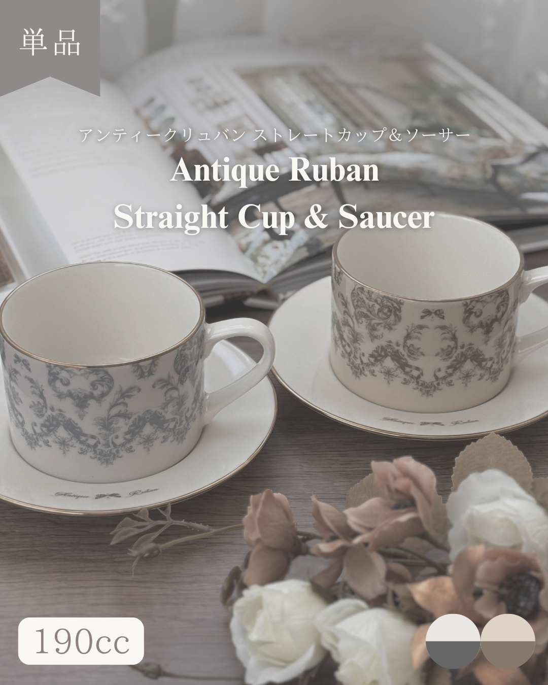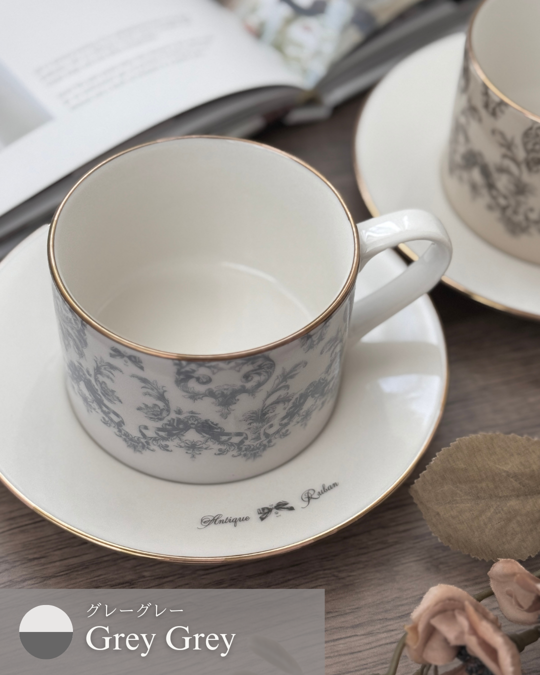 カップにはAntique Rubanとニュアンスカラーを全面に、