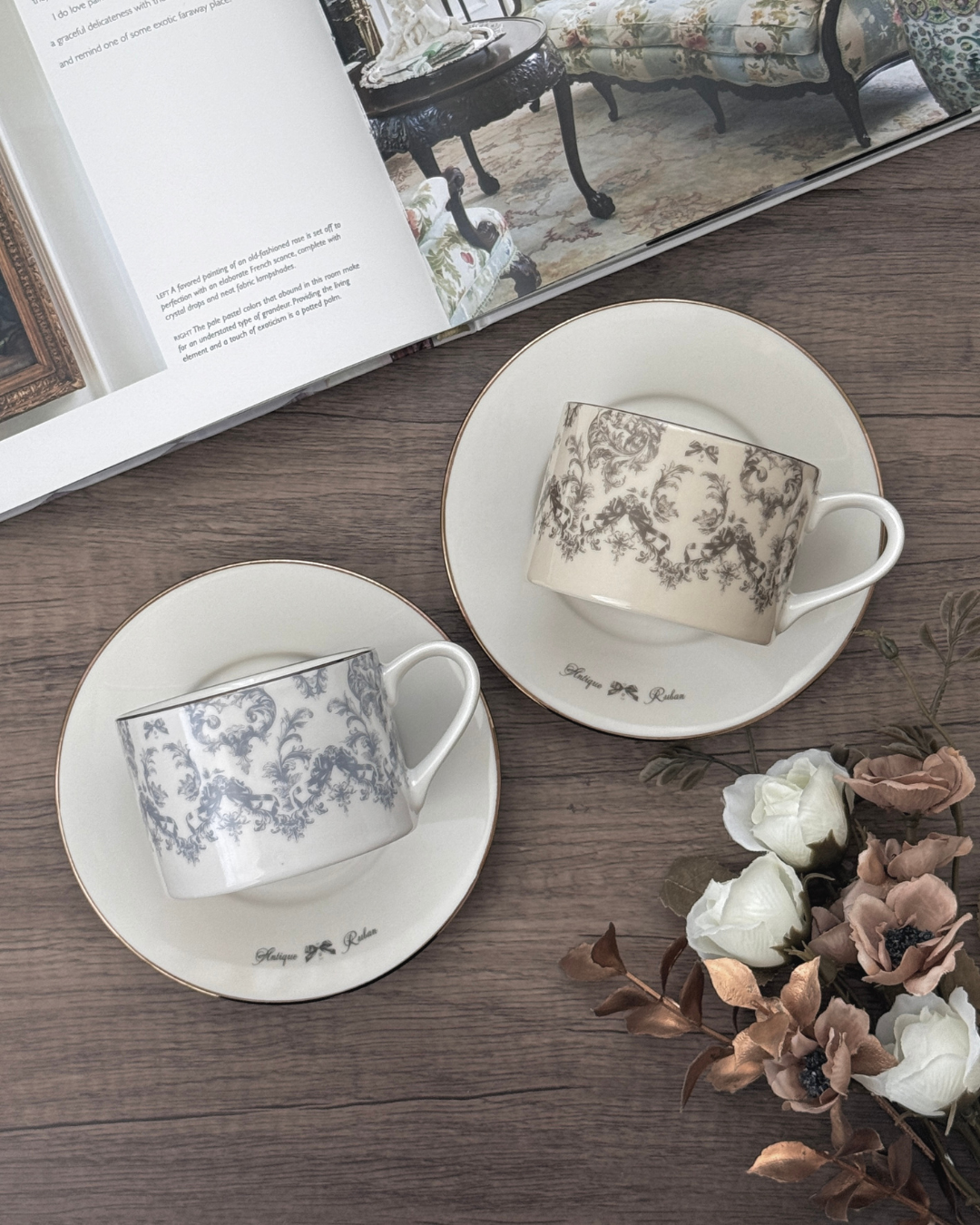 ソーサーには「Antique Ruban」の文字をあしらいました。