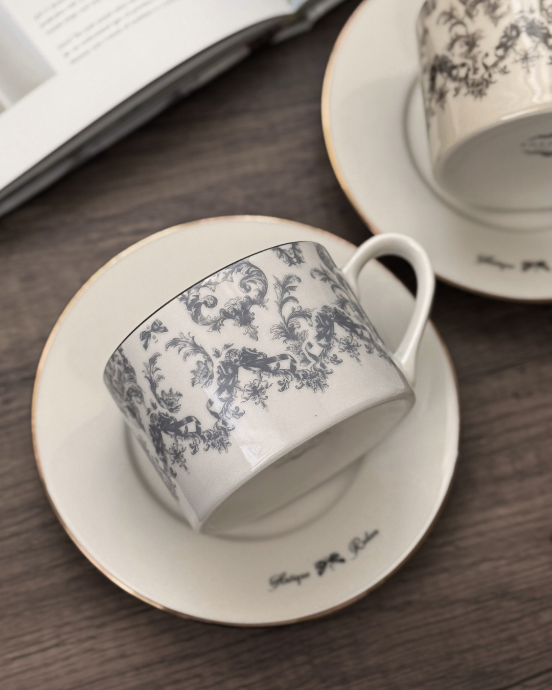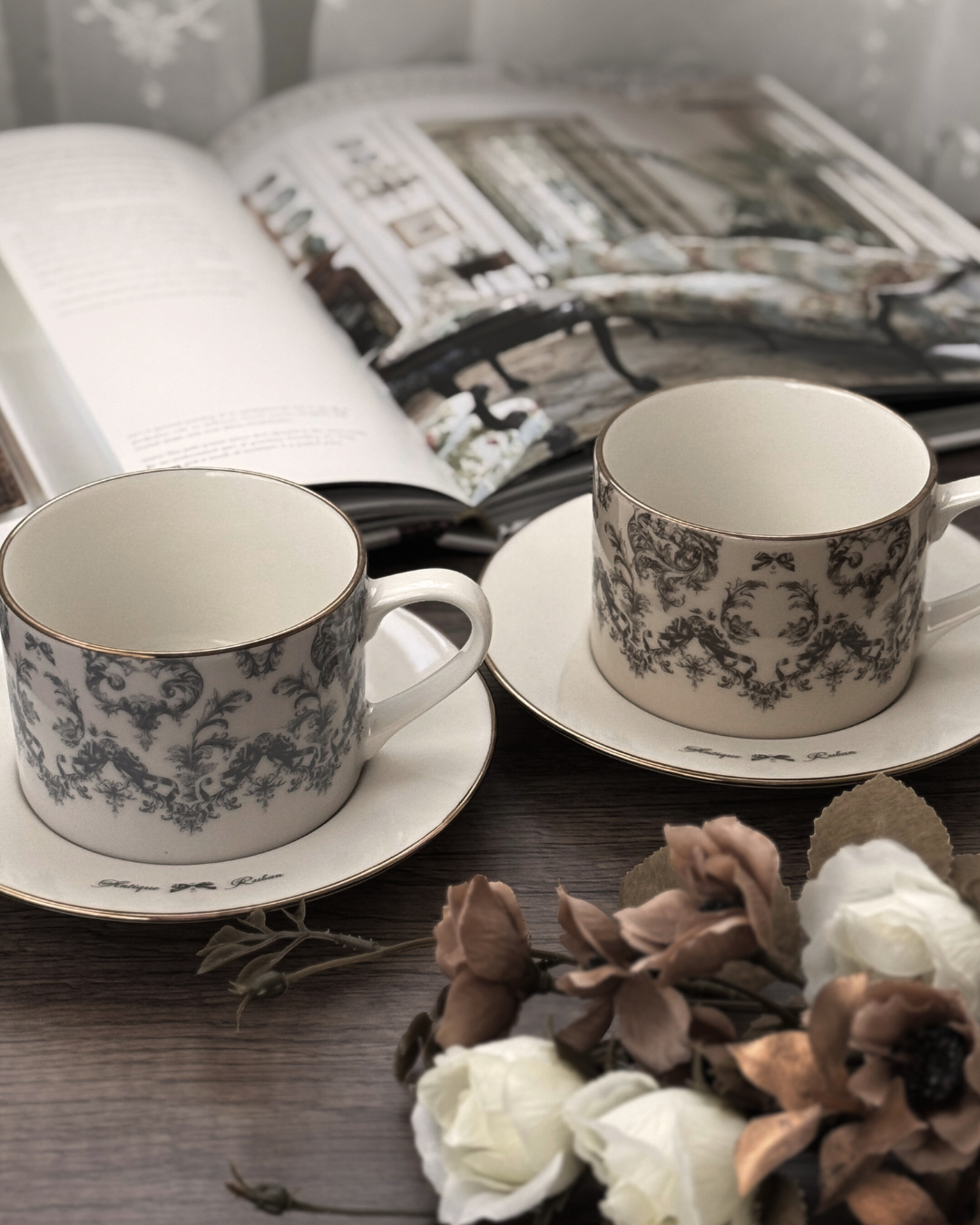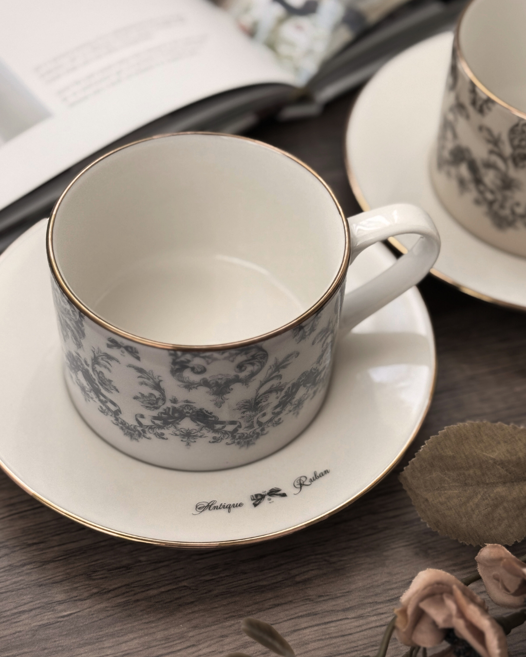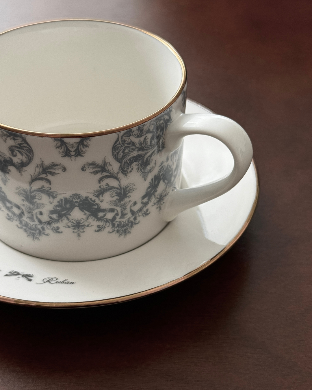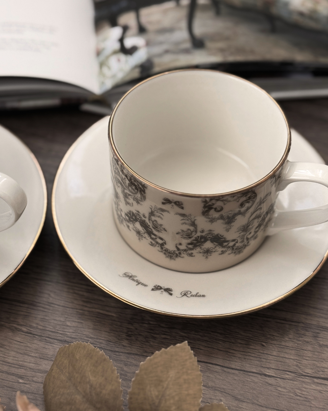 ソーサーには「Antique Ruban」の文字をあしらいました。