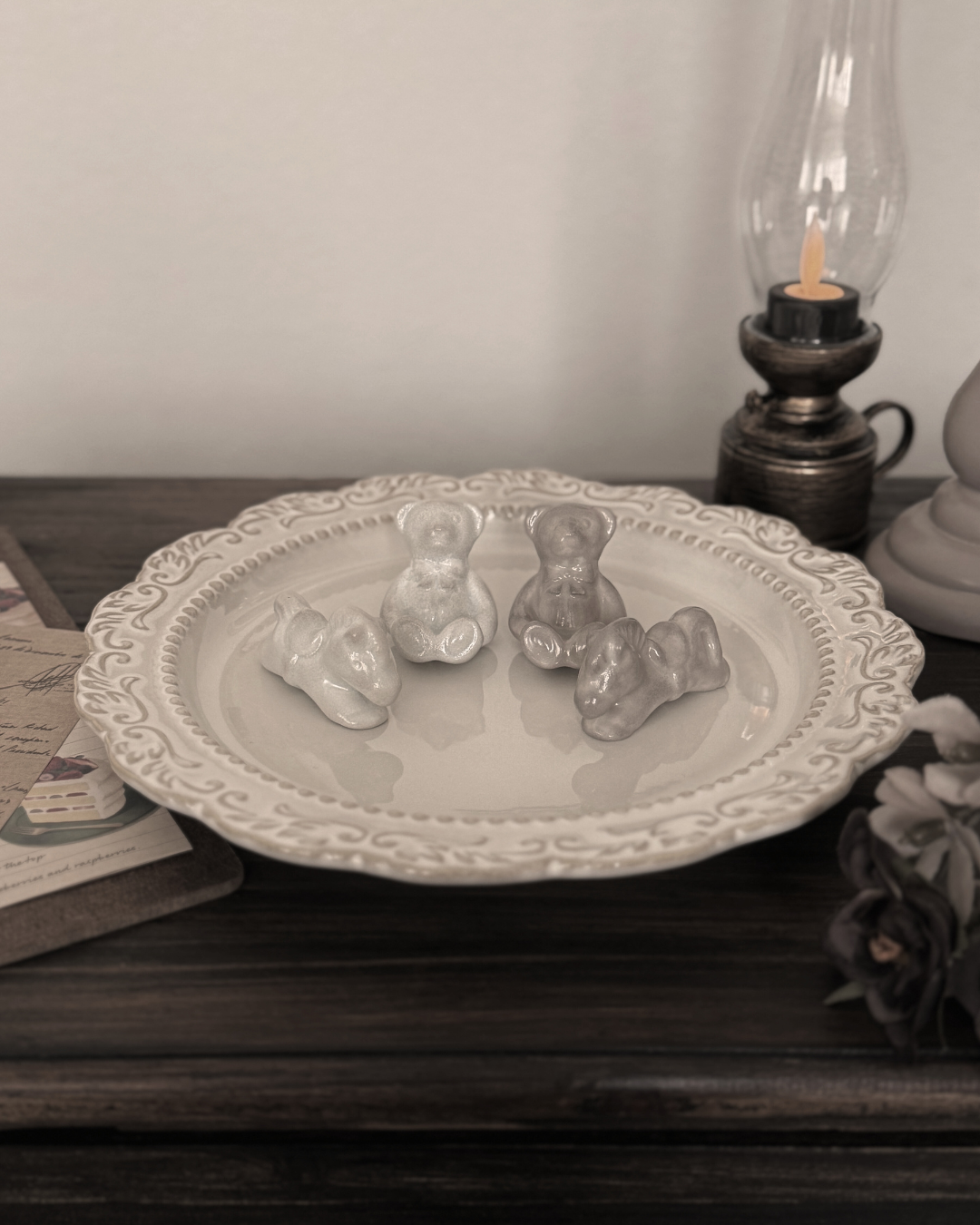 テディベアとホースのカトラリーレストに
