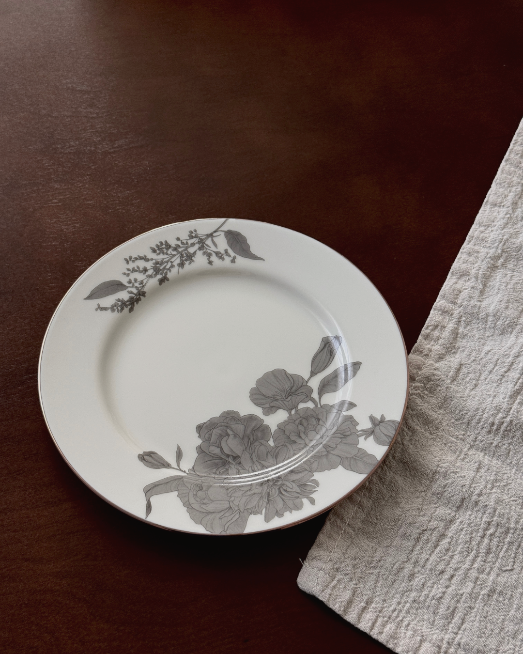 あたたかみのあるアイボリーカラーのリムプレートに