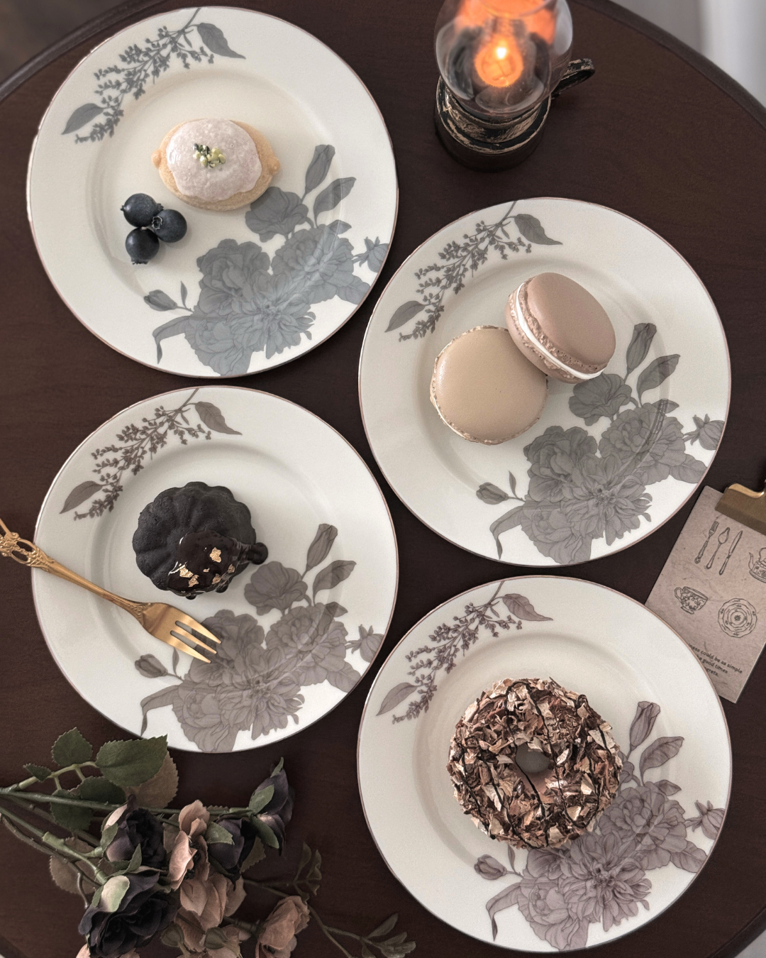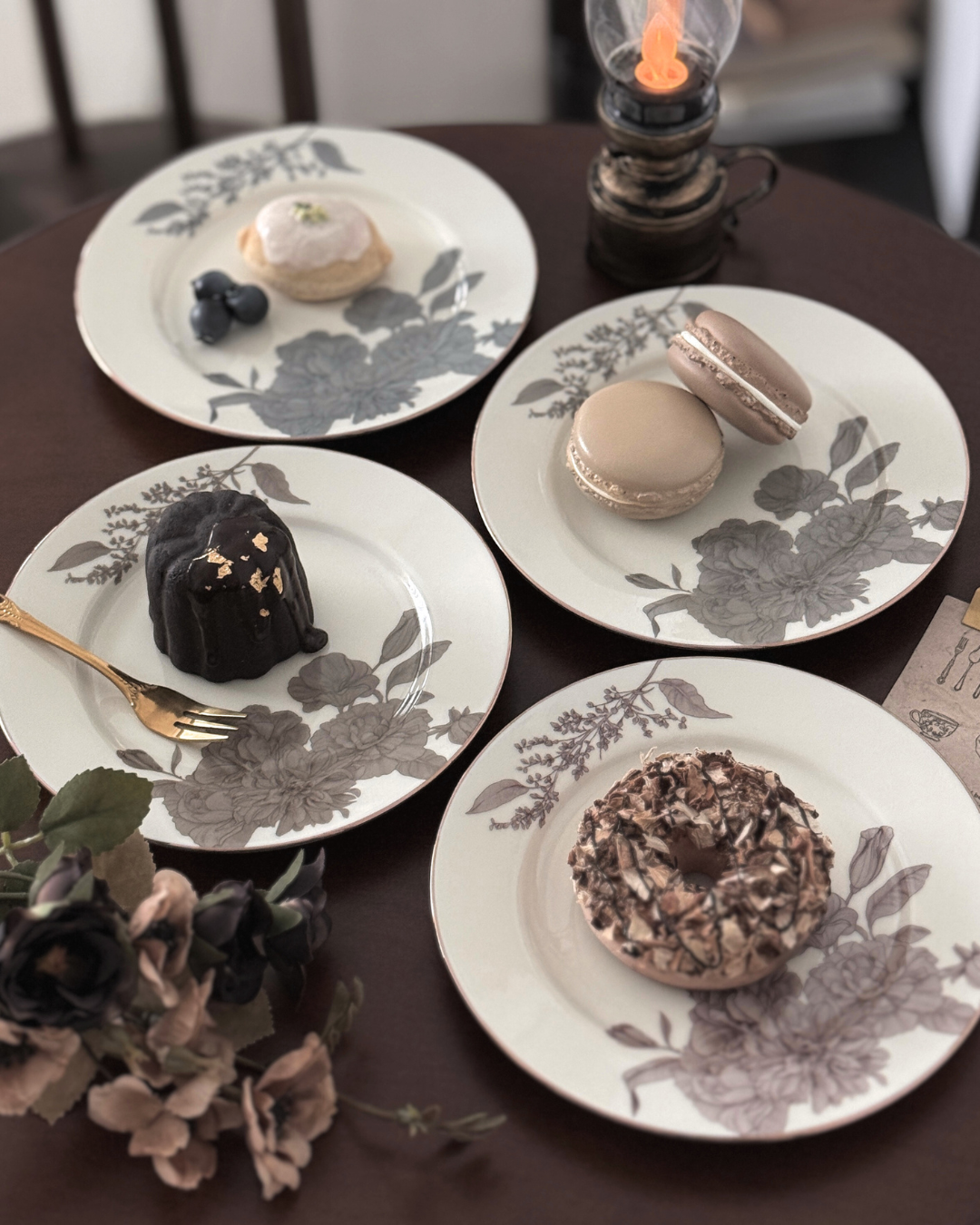 落ち着いた風合いと華奢な金彩が