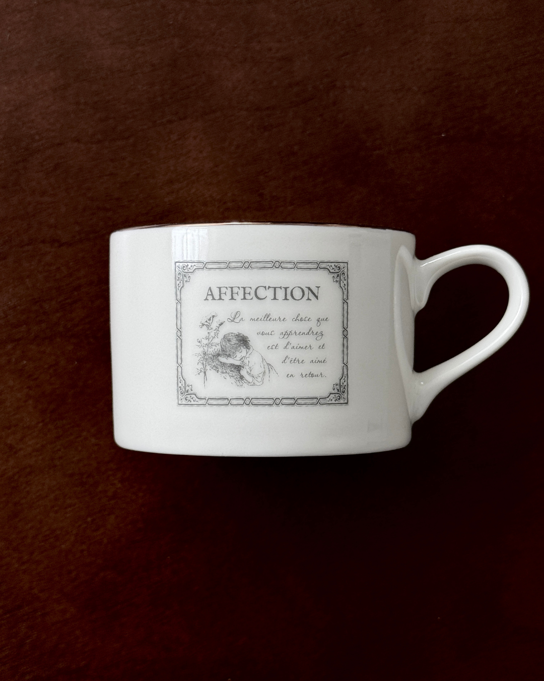 カップにはクラシカルなラベルデザイン、