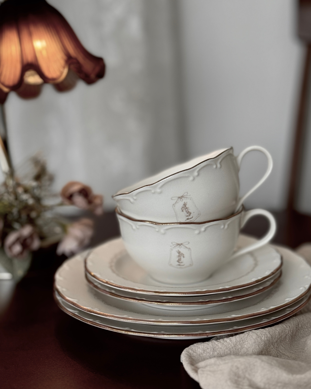 繊細な金彩と、やわらかなアンティーク調の色合いが