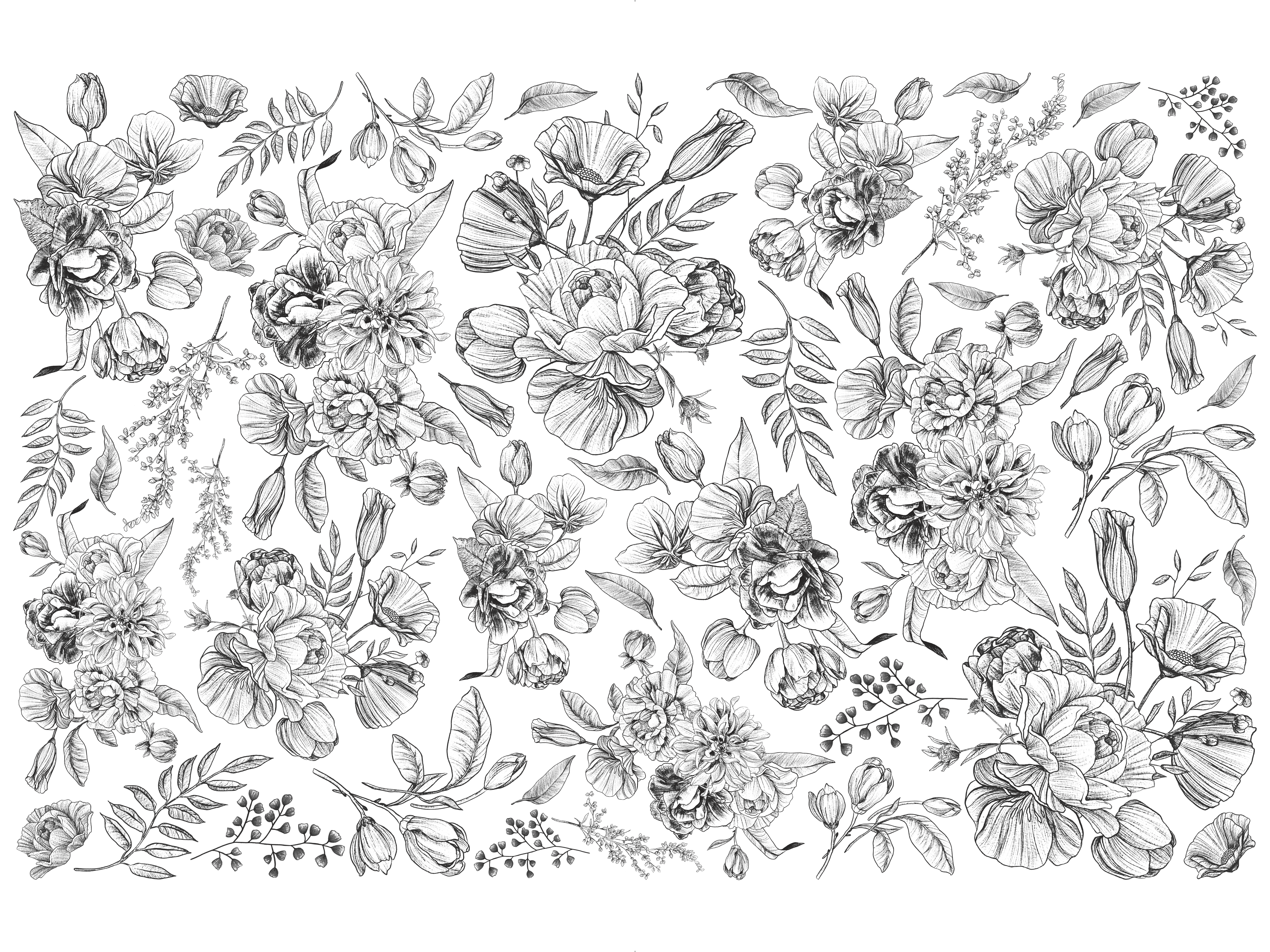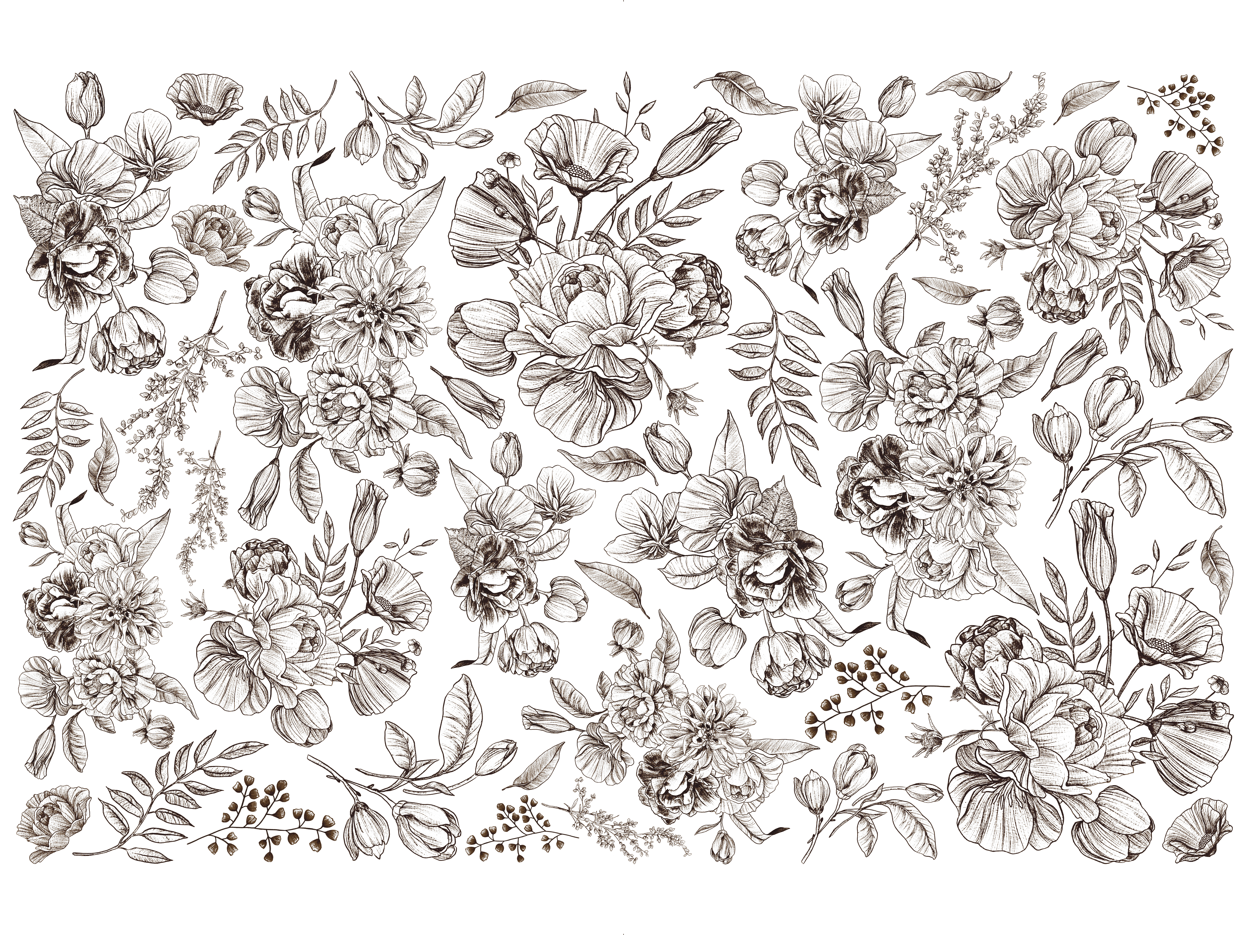 ROYTIQUE オリジナル転写紙【 champ de fleurs 】matte black 陶磁器用 A3