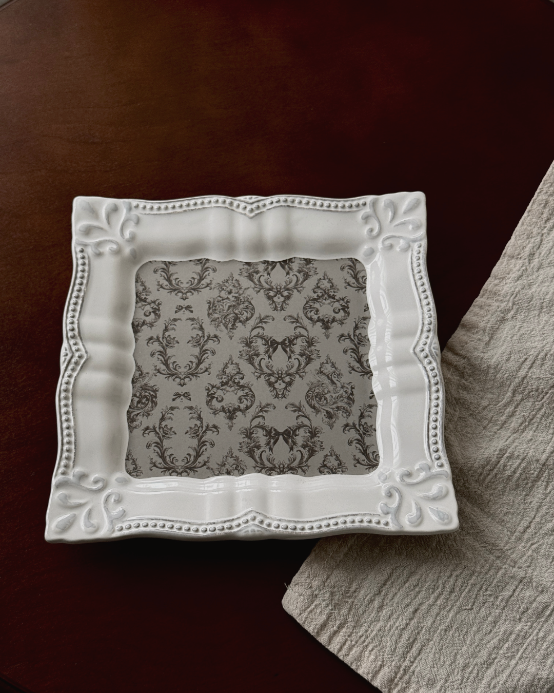 Antique Ruban Relief Square Plate