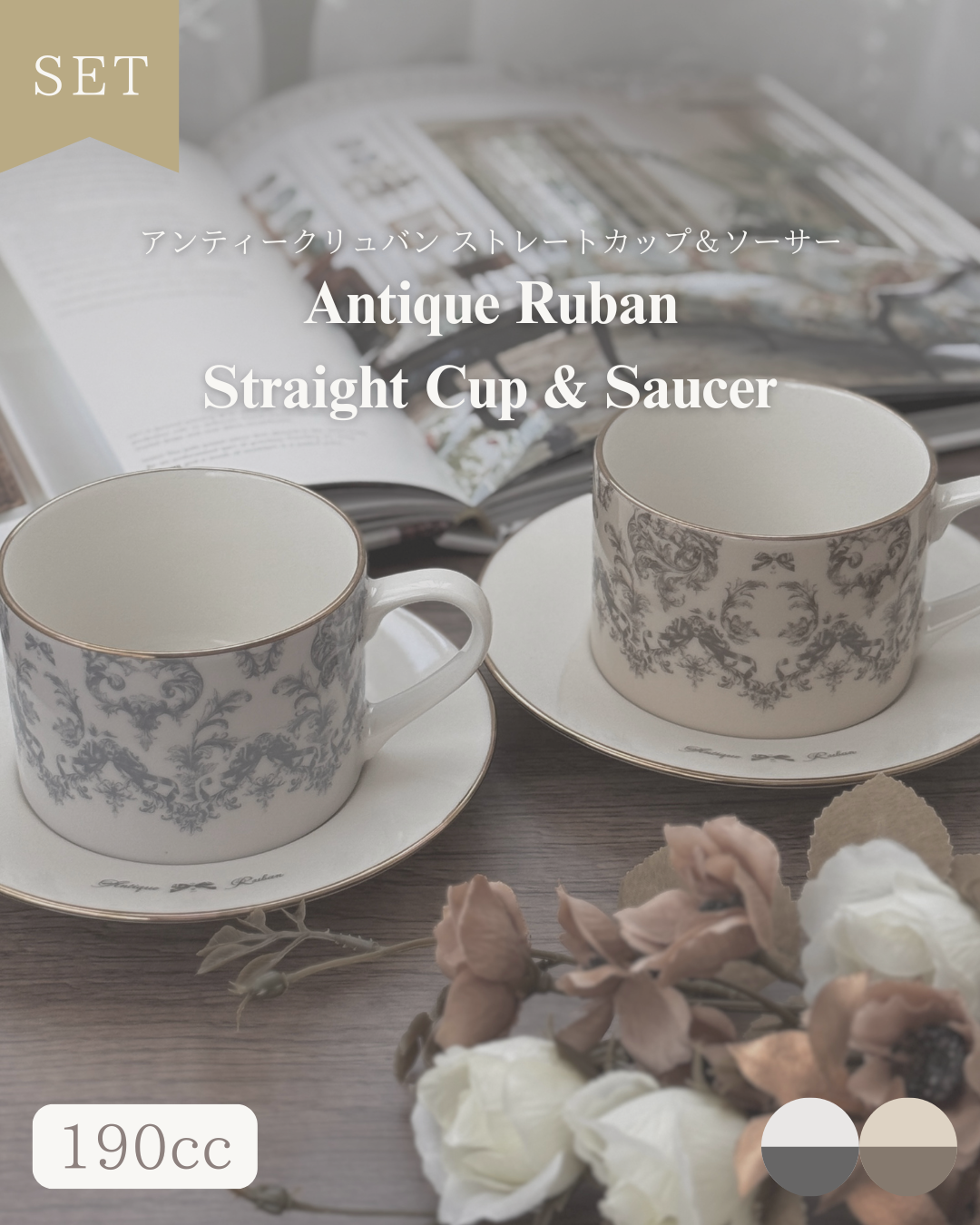 【 2客セット 】Antique Ruban Straight Cup & Saucer SET