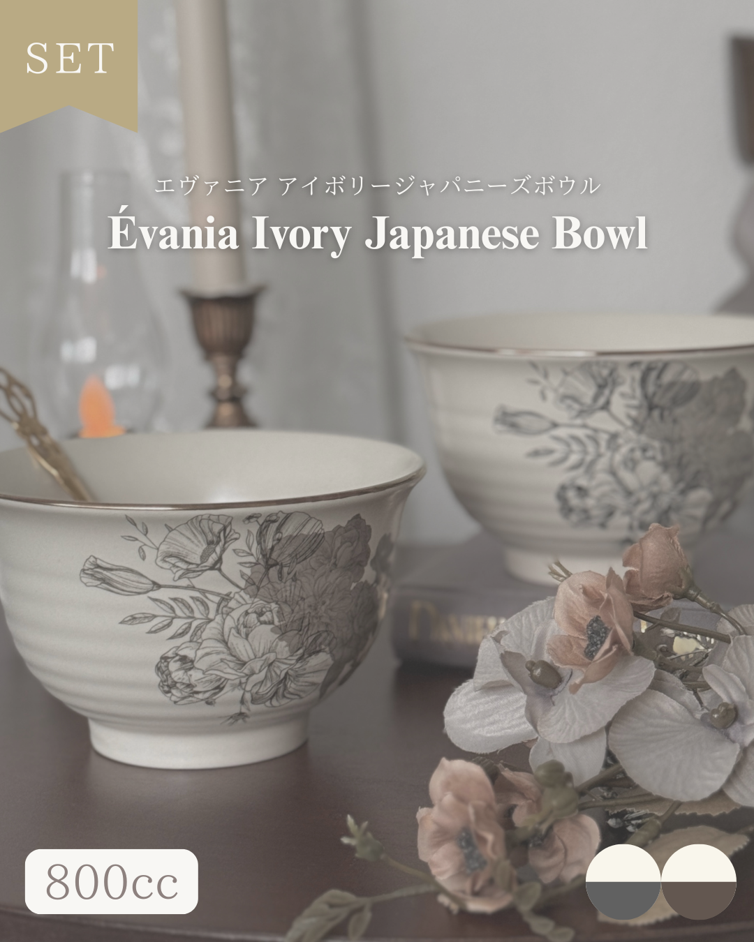 【 2点セット 】Évania Ivory Japanese Bowl SET